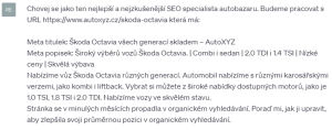 Teorie bylo ale hodně, a tak se nyní zaměřme na několik příkladů ukazujících praktické rozdíly mezi ChatGPT-3.5 a ChatGPT-4. Jako SEO specialista představím názorné ukázky právě na úkolech týkajících se optimalizace webů. Pro potřeby článku využívám smyšlené klienty.