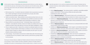Nyní se zkusme zaměřit na další důležitou součást práce SEO specialisty, linkbuilding. V tomto směru už se určité rozdíly mezi jednotlivými generacemi jazykových modelů prokážou. Prompt byl přitom pro oba shodný: „Představ si, že jsi skvělý SEO specialista. Za úkol máš získat zpětné odkazy na nový autobazar sídlící v Praze na Zličíně. Poraď mi konkrétní webové stránky, které lze použít pro linkbuilding.“