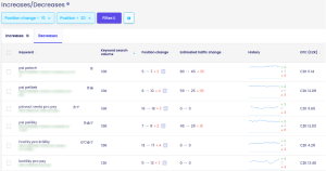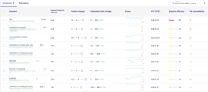 Zobrazte si, co dělá vaše konkurence. Dozvíte se, která klíčová slova jsou jejich nejhorší a nejlepší. Můžete dokonce srovnat několik konkurentů se svým webem. Tato funkce také umožňuje vyloučit ze zobrazení brandové fráze nebo se zaměřit jen na brand.