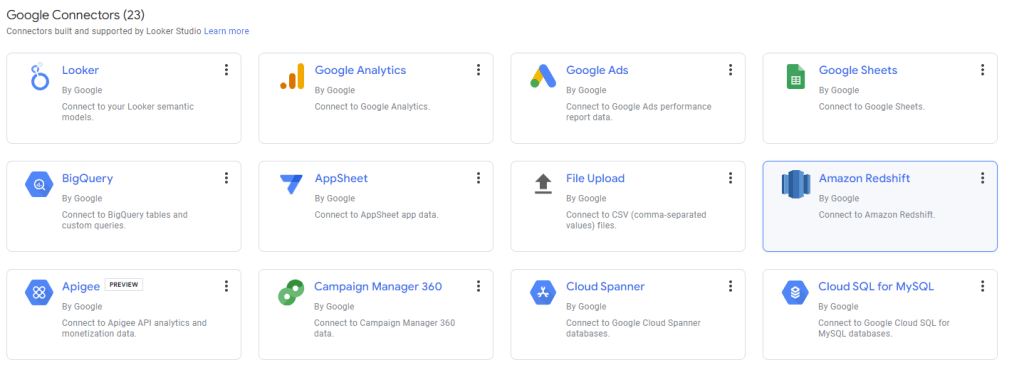 Looker Studio se bezproblémově integruje s dalšími službami Google, jako je Google Analytics, Google Ads a BigQuery. Máte tedy před sebou ideální volbu pro firmy, které využívají další nástroje a služby od Google.