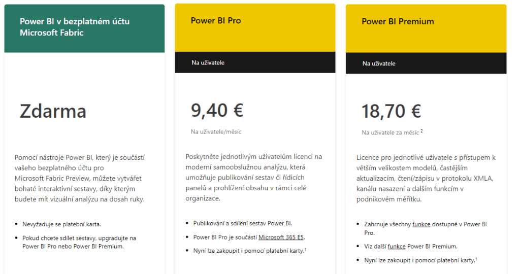 I když Power BI nabízí bezplatnou verzi, jeho pokročilé funkce a vyšší úrovně mohou být drahé, a to zejména pro velké organizace s mnoha uživateli. Klíčovým prvkem, který odděluje verzi zdarma od té placené, je možnost sdílení dashboardů s jinými uživateli.
