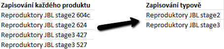 - Do řádku „najít“ vložíme název typového produktu. V konkrétním příkladu produkt „výškový reproduktor“.