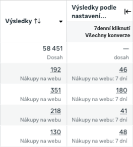 Jak je vidět na screenshotu výše, rozdíly ve výsledcích mohou být obrovské. Meta se samozřejmě snaží u kampaní dosahovat co nejlepších výsledků, takže se to ve finále může proměnit v jedno velké remarketingové kolo a akvizice tak může být upozaděna. Algoritmus Meta má přirozenou tendenci preferovat remarketing, protože tyto konverze jsou levnější, častější a snáz dosažitelné.
