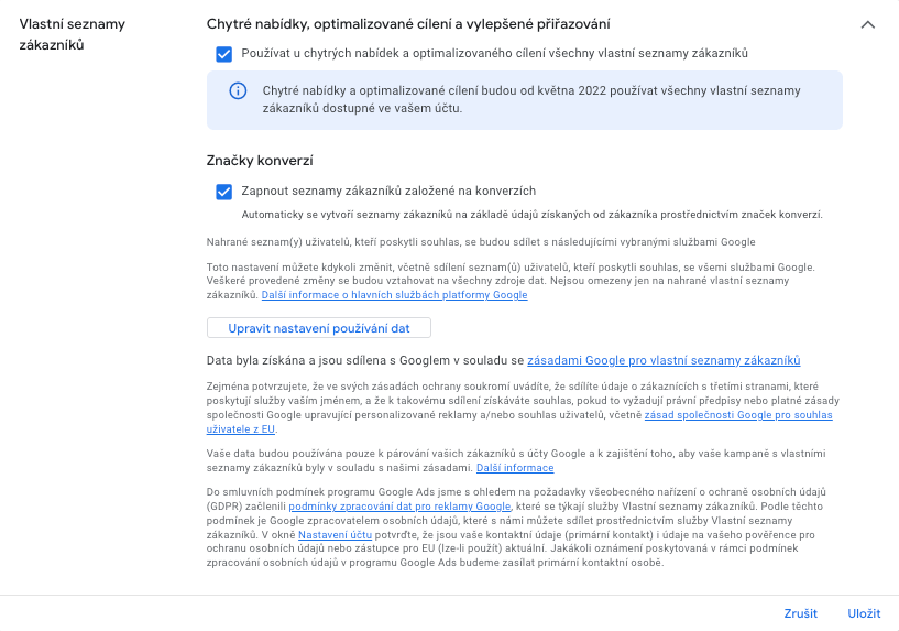 Poslední možností, jak dostat vlastní seznamy zákazníků do Google Ads bez nutnosti manuálního importu nebo napojování externích systémů, jsou automatické seznamy založené na konverzích. Tato funkce umožňuje Google Ads automaticky vytvářet publika na základě konverzí, které jsou v účtu definované.