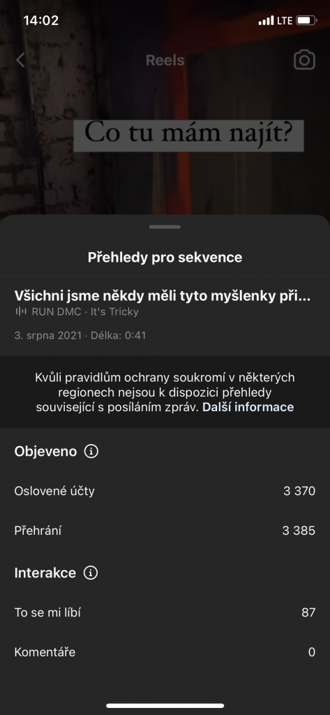- Zkontrolovat dosah a míru zapojení jednotlivých Reels.