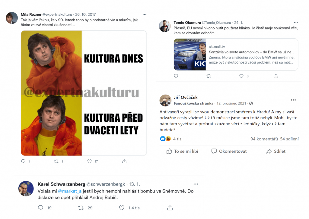 Se satirickými profily to došlo tak daleko, že se často stává, že si při čtení facebookového příspěvku nebo tweetu nejistě říkáte, jestli je to tak skvělá imitace, nebo jestli takový nesmysl opravdu napsal některý z našich veřejných činitelů.