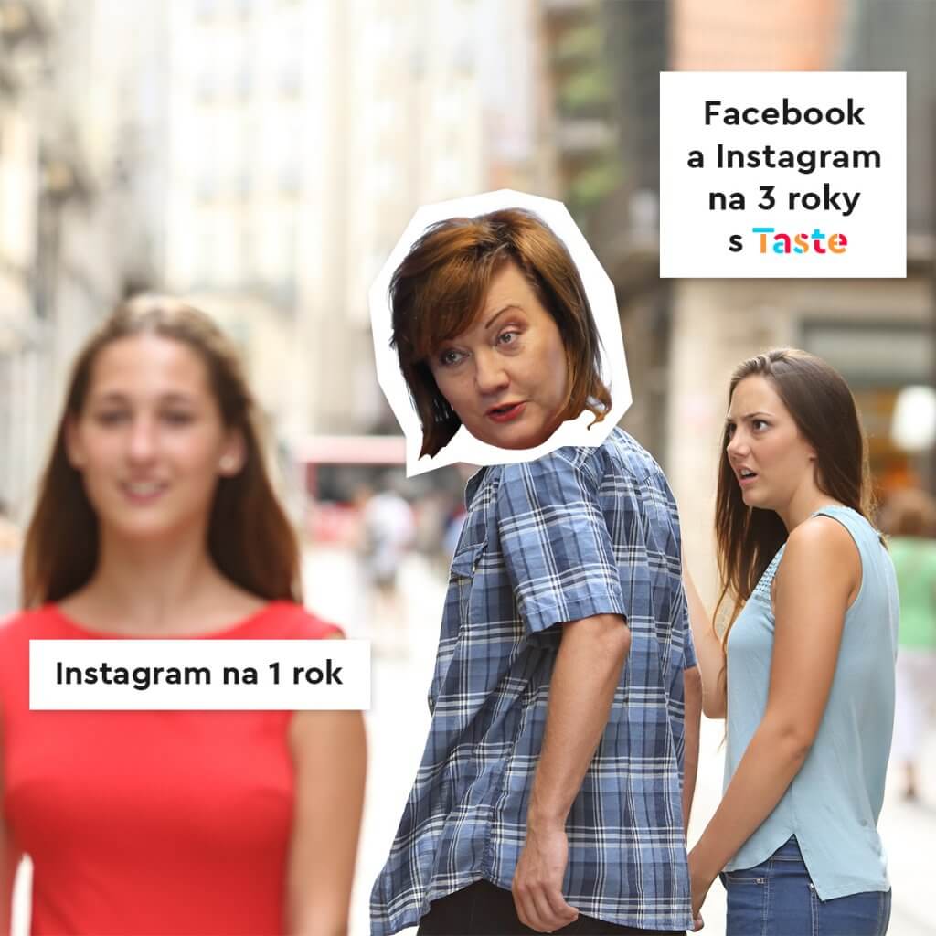 Další velmi oblíbenou satirickou disciplínou je koláž. Té se u nás profesionálně věnuje hned několik profilů, ale nepohrdnou jí ani běžné firmy. Například nedávný skandál s účtem za správu instagramového účtu Aleny Schillerové vyvolal reakci u agentury Taste, která se zaměřuje mimo jiné i na marketing sociálních sítí.