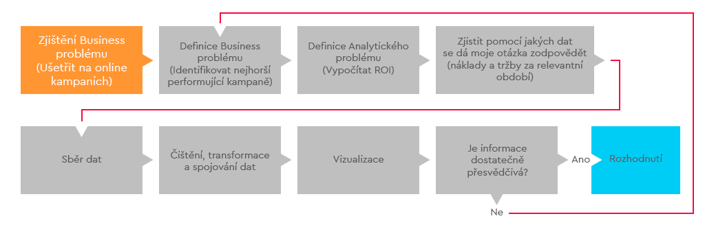 Představte si, že jste marketingový manažer v internetovém obchodě a vaše oddělení potřebuje uvolnit 100 000 Kč na krátkodobou kampaň, která bude probíhat jeden měsíc.Jak se dá v tomto případě postupovat, když dokážete využít BI? Před tím, než se BI nástrojů dotknete, je třeba zjistit, kde vlastně šetřit. Šetřit zmenšováním týmu v tomto případě nedává smyl, přelepování billboardů na jeden měsíc též nepřipadá v úvahu. Existuje ale kanál, kterému rychlé změny a optimalizace za běhu nevadí – online placená reklama.