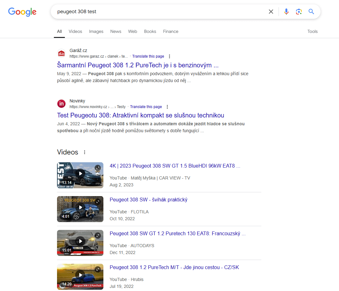 Odpovědí na uživatelský záměr je např. i samotná podoba SERPu (výsledků vyhledávání). Např. pokud se na nejvyšších pozicích objevují videa, je zřejmé, že kvalitní obsah musí být video, protože uživatelé s daným klíčovým slovem zkrátka hledají videoobsah.