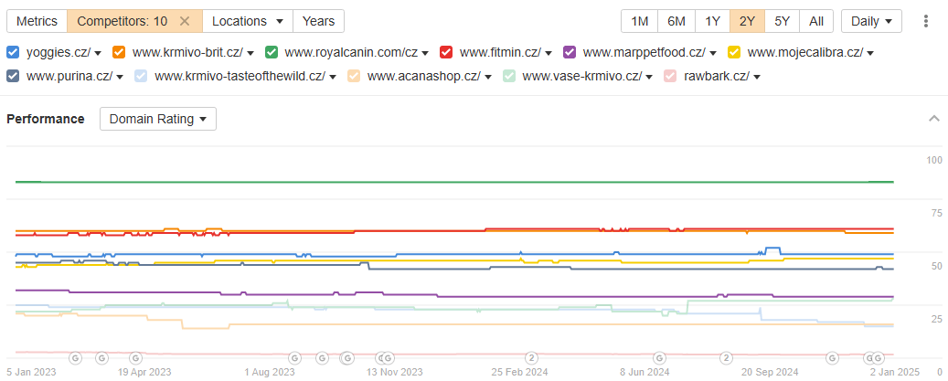 - Počet klíčových slov na nejvyšších pozicích ve výsledcích vyhledávání – Konkrétní číslo se však může lišit podle tématu nebo velikosti webu. Nelze tudíž určit hranici, na kolik klíčových slov musí doména tzv. rankovat, aby byla kvalitní. Nutné je tak toto pokrytí srovnávat s konkurencí, kterou chtějí mít jako benchmark.